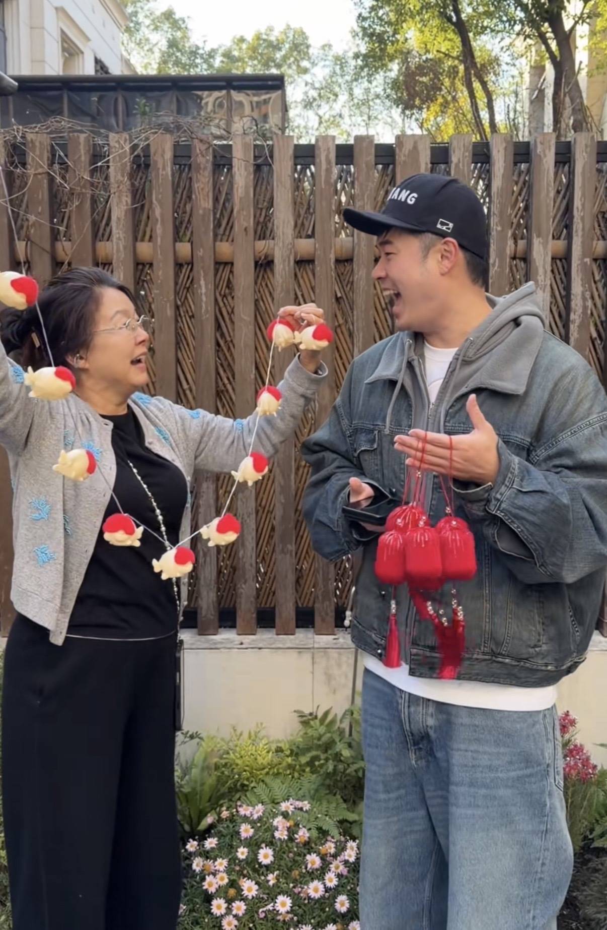 在大别墅的院子里,张子萱妈妈拿出来自己做的小鱼,也要挂起来。这样的子萱妈妈好慈祥,她的眉眼里都是温柔。张子萱的性格和长相,真是完全遗传了妈妈。